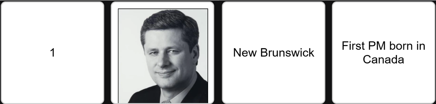 Play GameName 4 Canadian prime ministers by Number, Portrait, Birthplace, and a Fact